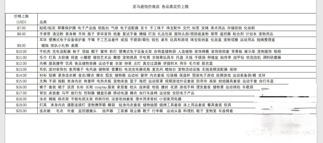 这个消息和之前的消息一致:亚马逊给低价商店的商家发了一份 “限价令 ”,近 700 商品种类繁多,单品价格不得超过 20 美元,其中多种商品不得超过7美元。