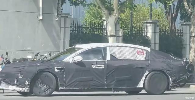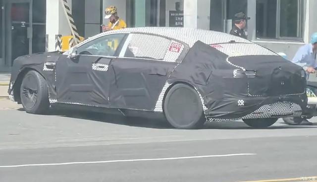 让我们看看车身的侧面,因为它是定位的。 D 级别车型,首先车身长度必须足够大,想象一下整个车身长度在图中。 5.4 大米左右,轴距为 3.4 米左右。透过谍照可以感觉到整车侧腰线比较平直,或许不会有太大的变化。整个车侧的视觉重心偏向车尾,结合车顶线条的滑背趋势,有一点“拖尾”的感觉,视觉感觉很重。另外,在后门位置,目前被伪装覆盖,结合后门边缘的造型方向,估计新车可能不会提供三角窗。