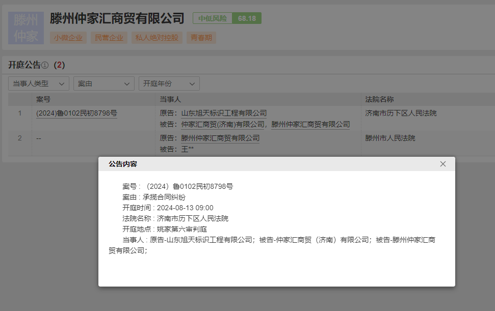 虽然仲家汇的财务数据不能通过公开渠道查看,但各种迹象表明,仲家汇集团的资金并不富裕。今年八月,仲家汇集团和济南仲家汇一起成为被告,接管了200多家统一银座店面。由于合同纠纷,山东某标识工程有限公司将仲家汇诉上法庭,本案具体案件尚未公开披露。此前,仲家汇集团还在2022年8月成为被执行人,被执行金额仅为2543元。