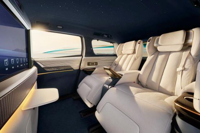 内饰方面,首创后排座椅的智能导轨和智能迎宾方式。自动迎宾模式开启时,座椅可以主动回归舒适的坐姿,收起腿部,重新定位椅背,移动到最前面的位置,方便再次上车;客户入座后,座椅会自动返回设定位置。