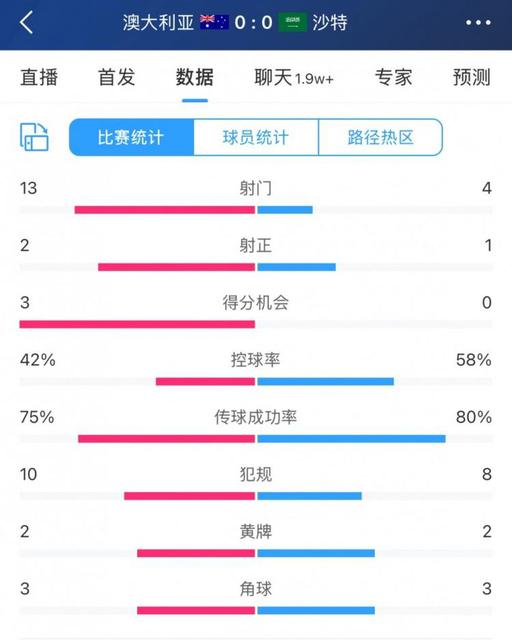 亚洲区世界杯资格赛 18 第五轮比赛正在进行,强赛重燃战火。在 C 在一场比赛中,两支亚洲强队澳大利亚队与沙特队进行了直接对话。因此,本来对球迷来说应该是一场精彩的强强对话,最后却以一场精彩的强强对话结束。 0:0 平手收尾。在这场比赛中,主场作战的澳大利亚在场面上有一定的优势,但是双方都没有破门。整场比赛结束后,两队只有两队。 3 在门套范围内进行脚射门,共有一些。 12 次越位。必须说,这种表现,的确不像两支强队在比赛。