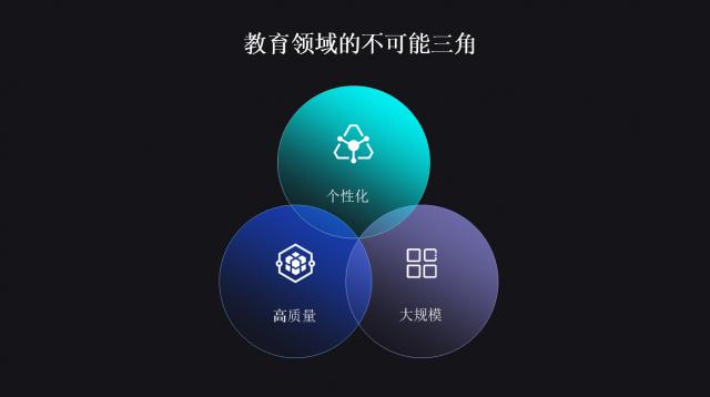 美好的未来已成立 21 多年来,我们一直在做大量的工作,我们都希望找到一种方法,让我们经常谈论的教育领域不可能同时存在的三角形——“个性化、高质量、大规模”。让我们回顾一下过去的教育培训行业。 20 多年来,当我们在线下小班时,我们可以解决个性化和高质量的问题,但我们没有办法实现大规模。在线双师大班无法处理大规模问题,也无法实现个性化。如何让这三者同时共存,是我们一直在思考的问题。