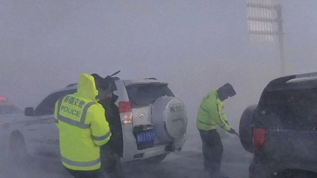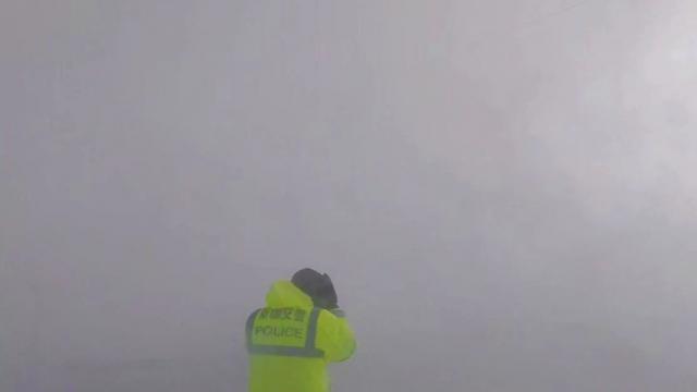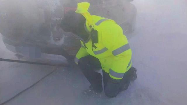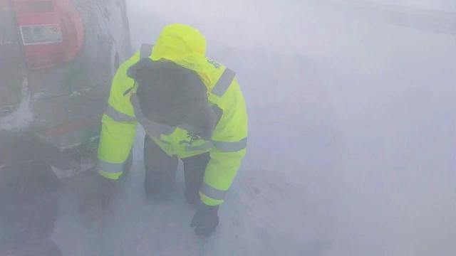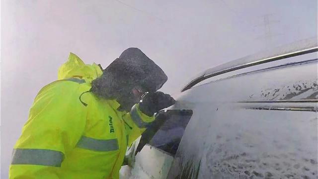 早上 09:30 分许,交警大风区有人和车辆被困,立即紧急前行。经过半个小时的搜索,在极低的可见度下,被困的车辆和人员终于在乌雪特高速公路收费站入口处被发现。