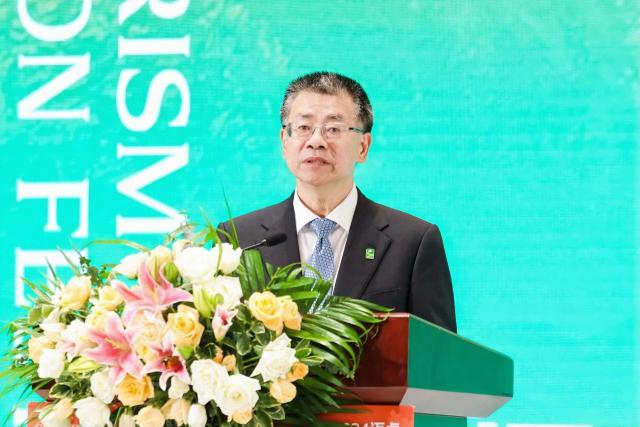 在 2024 在文化旅游住宿节开幕式上,杭州东方网升科技有限公司董事长乔毅、全球酒店和旅游培训机构 AMFORHT 吉布里尔秘书长 · 中国建材流通协会会长福法纳、秦占学先后发表讲话。
