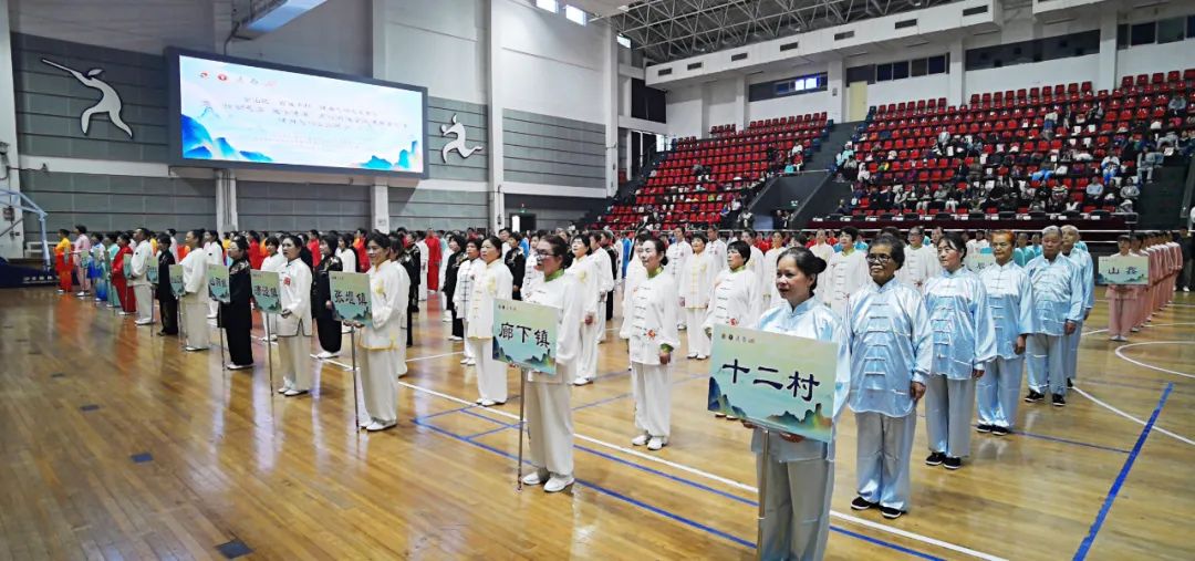 随后,各镇(社区)的参赛队伍轮番上阵。太极养生杖的灵动优雅,八段锦的刚柔相济,马王堆的引导,五禽戏的仿生魅力...各种健身气功上演。