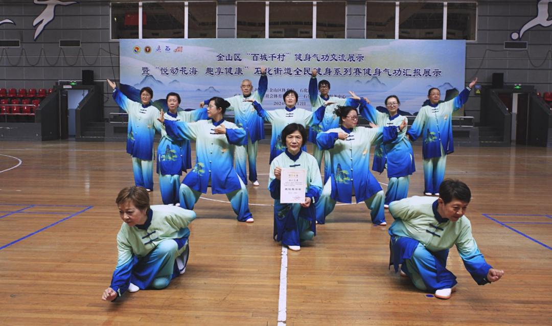 十一月十二日,金山区“百城千村”健身气功交流展示暨“悦动花海” “享受健康”石化街道全民健身系列赛健身气功报告展在金山轮滑体育馆举行。来自全区11个城镇(社区)的37支健身气功队伍,共有400多名选手参加了活动。