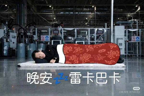 此前 11 月 13 日本,雷军发文称:网友催我到工厂拧螺丝。事实上,我经常去那里,今天一大早就到了。来得太早,在车间里又眯了一会儿。没想到,一觉醒来,10。 万台已完成!并且有一张躺在车间里的照片。传出后立即点爆网络,不少网友玩梗,五菱汽车总经理周金开更是效仿雷军躺在车间里。雷军也很接地气,自己也在微博下面留言说“车间的地板很干净”。