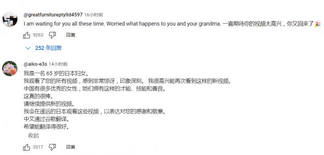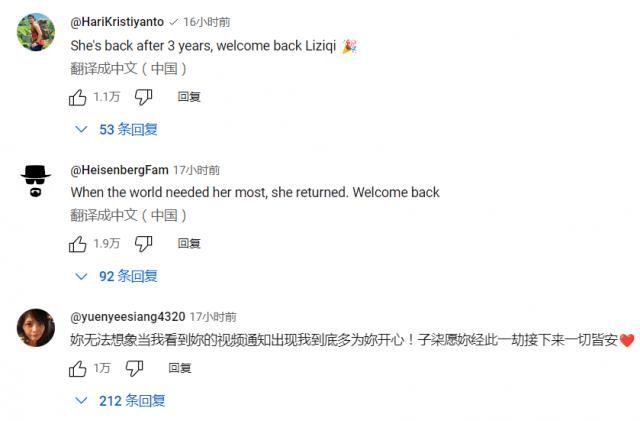 而且这次李子柒复更后,短短十几个小时,YouTube 上述两个视频的评论已经超过了 5 万条,每一条都掩饰不住兴奋和快乐。