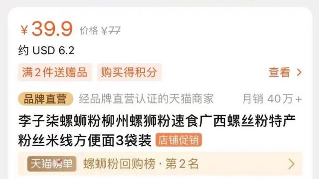 2018 2008年,以李子柒命名的品牌上线,并开设了官方旗舰店,先后推出螺蛳粉、藕粉、花饼等产品。凭借李子柒的流量,产品销量非常好,其中李子柒螺蛳粉销量最好,月销量破。 40 万,月销售额在 1596 大约一万,相当可观。