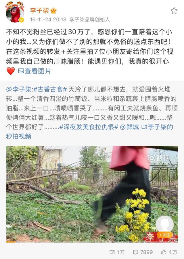 这是李子柒第一次进入大众视野,一战出色,她也因此得到了一家人。 MCN 企业的关注。