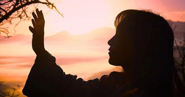 录像一开始,她站在云海中,用手指触摸太阳,仿佛意味着一个新的开始。