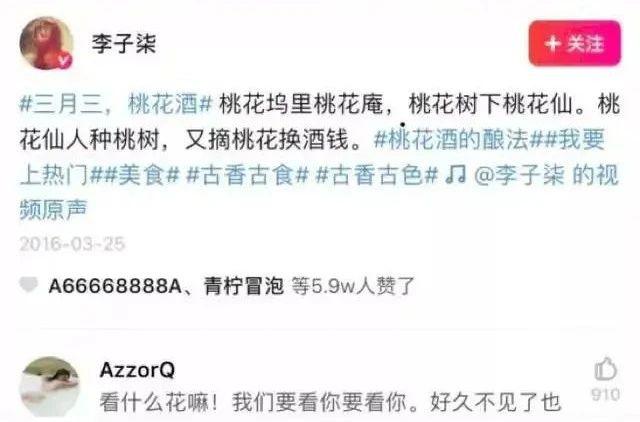 2016 2008年,刚进入短视频赛道的李子柒,发布了一段关于桃花酒的视频。