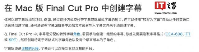 IT 世家 11 月 15 科技媒体日新闻 9to5Mac 昨日(11 月 14 日本)发布博文,报道称苹果公司最新更新。 Final Cut Pro 录像编辑工具,其中最值得注意的是引进。 AI 字幕生成功能,但遗憾的是现阶段只支持英语。