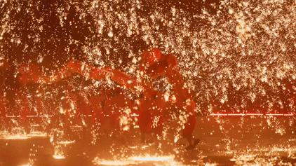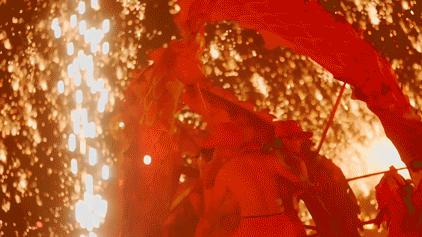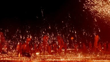 刚开始拍摄时,当铁花袭来时,人们会不由自主地惊慌失措。