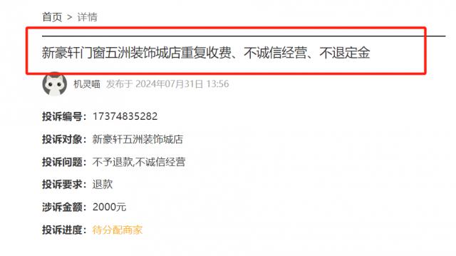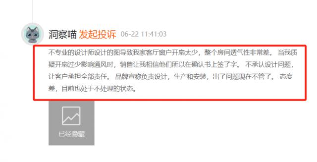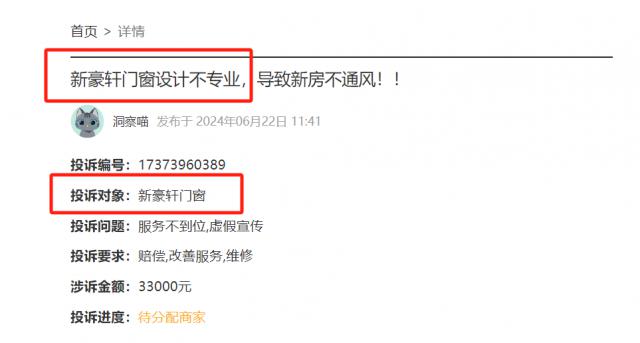 根据黑猫投诉平台,新豪轩门窗被消费者投诉,被指设计不专业。