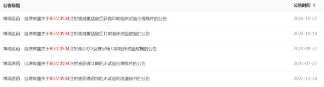 由于当时减肥药市场还没有爆发,公司还在规划控糖药,所以 BGM0504 仅是排到 BGC0228 未来的其他选择。幸运的是,公司的船只很容易掉头。看到减肥药的机会后,博瑞医药及时调整了创新药物的研发策略, BGM0504 提及公司重点关注的排名。