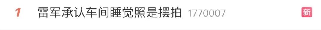 雷军说,睡在车间地板上的照片的确是摆拍,只是为了让大家开心。