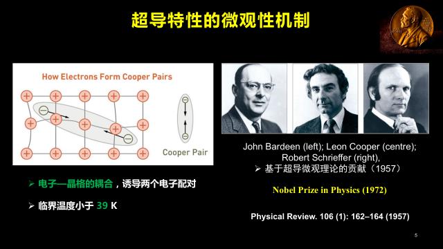 我不禁要问,为什么会出现超导?美国的三位科学家得到了一个非常经典的解释。简单来说,当两个电子穿过一种材料时,它会导致材料中的一个微区和一个正电畸变。它还会把另一个电子和两个电子绑在一起,形成一个超导电子对。我们知道两个电子是相互排斥的,但是在这样的材料中,两个电子可以凝结在一起,形成一个超导电子。