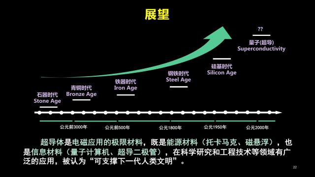 更进一步的展望,我们知道,从石器时代到青铜时代,再到铁器时代,硅基半导体时代,我们能否在下一步进入一些超导或量子时代?