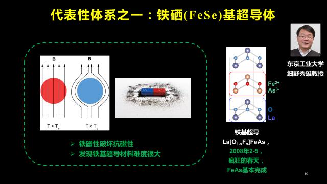 正如我们刚才所说,超导是抗磁的,但是如果在外面加一个强磁场,就很容易破坏超导。很难发现这种铁基超导体。为什么呢?因为铁本身磁性很强。