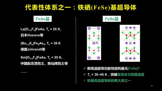 当时这个系统在超导领域也是一个很大的突破。基于对晶体结构的深入思考,经过这么多年的发展,我们终于发展出了铁硒。 FeSe 这类系统,这一系统最重要的一点,它突破了麦克米兰极限的温度,也就是 39K;