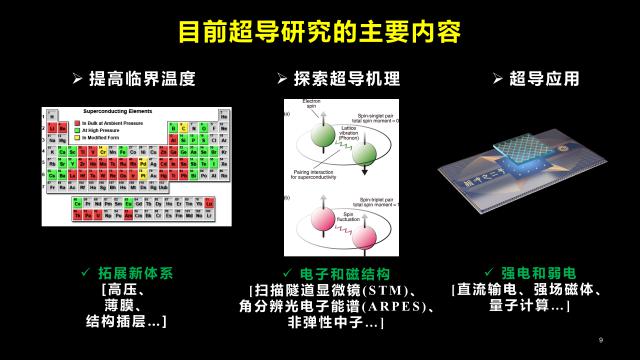 二是要明白为什么会出现超导,这也是目前凝聚物理学家最关心的最大科学问题之一;三是超导的应用。