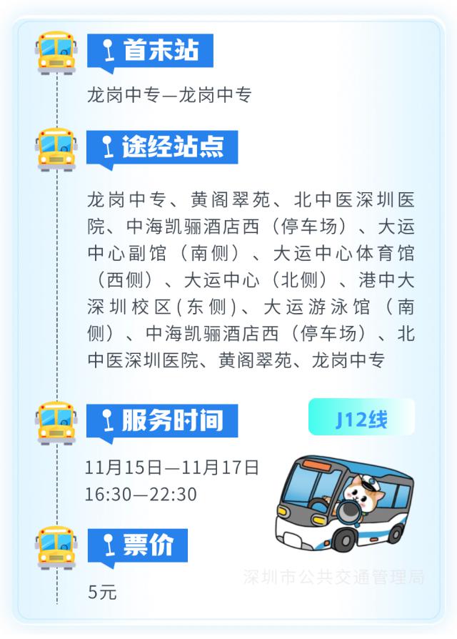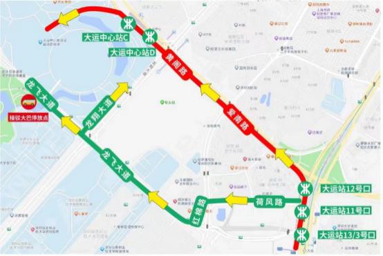 大运会中心体育场、大剧院公交站、广电大厦①公共汽车站(福田高铁站)、世界之窗公交站