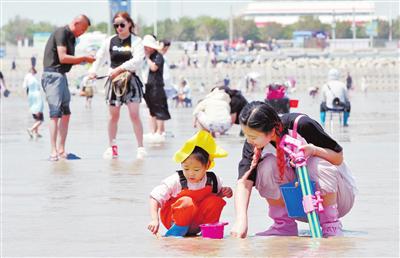 天空逐渐变白,东疆港就像一幅未完成的油画,悄然变化,神秘而华丽。那一刻,一轮红日跃出海平线,海面金光闪闪,海鸥鸟儿聚集,海浪飞溅。潮起潮落,谁在挖沙子抓螃蟹,寻找赶海的快乐?生活的美好可能隐藏在这个简单的快乐之间。