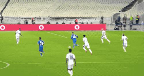 第 51 在几分钟内,贝林厄姆收到了马杜埃凯的传中,希腊门将已经束手无策,足球落在了柱子上。
