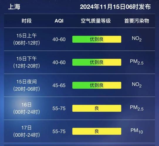 今日(11月15日)申城为阴天,有时有阵雨,东北风3~4级,相对湿度为95%~65%,全天温差较小,19~23℃,体验温暖湿润。另外,由于辐射降温的影响,今天上午前全市许多地区都有雾气,大家出行时要注意道路交通安全。