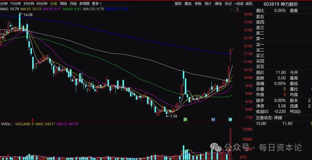 2016年11月25日,神力股份在上海证券交易所成功上市,每股发行价格为8.77元。上市后,神力股份连续拉高15个涨停板,股价触及51.21元,随后保持高位波动。2017年3月29日,神力股份股价开始在高位暴跌,从此一蹶不振。2024年9月18日,神力股份股价在漫长的震荡下跌通道中跌至7.59元。