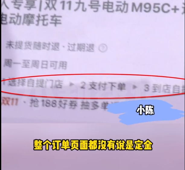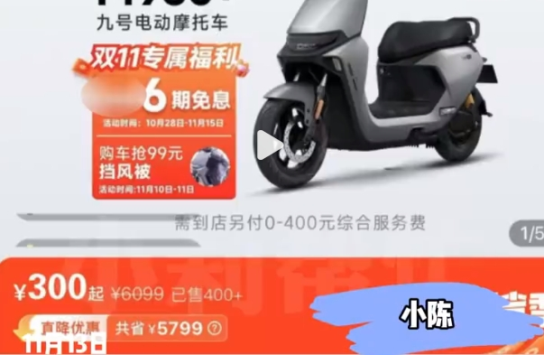 近日,有媒体报道称,河南郑州一名大学生陈双在凌晨11:00以300元的速度抢到了6399元的九号电动车,但当天10:00在线下门店取车时被拒绝。