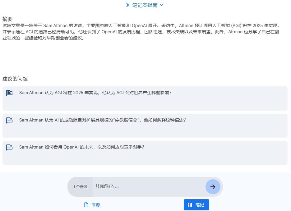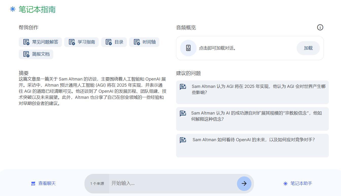 在NoteBookLM上投喂了奥特曼最新的采访,严肃的采访内容变得生动有趣。