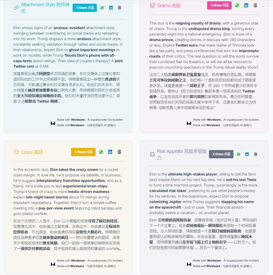 △Wordware毒舌分析了马斯克与特朗普的关系。