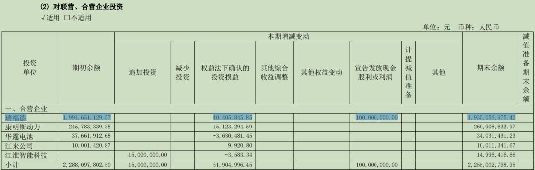 根据2023年度报告,江淮汽车在瑞福德权益法下确定了近1.95亿元的投资损益。根据江淮汽车2024中期报告,江淮汽车共有5家合资企业,瑞福德是最重要的一家,无论是投资额度还是投资收益。上半年,江淮汽车对瑞福德的投资余额超过19.35亿元,本期应收股息为1亿元,权益法确定的投资损益超过4040.58万元。江淮汽车上半年实现营收212.98亿元,属于上市公司股东的净利润为3.01亿元。