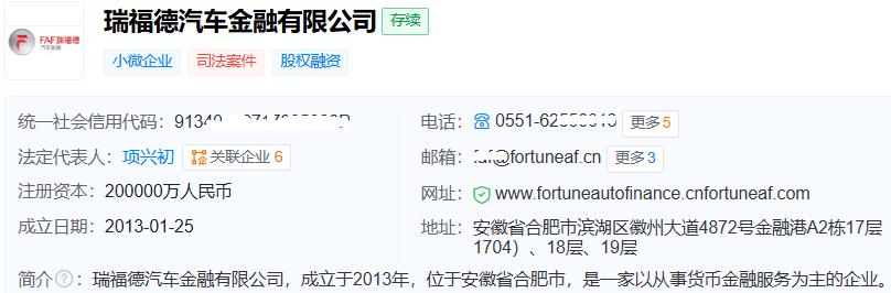 根据瑞福德的信披,江淮汽车和桑坦德消费金融公司是其实际控制人,法定代表人、董事长项兴初也是江淮汽车的法定代表人和董事长。