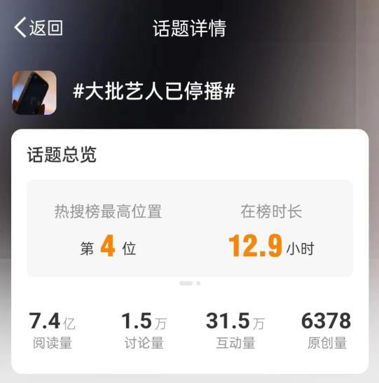 2023年,#大批艺人已经停播#的话题出现在微博热搜上,每天阅读量超过7亿。