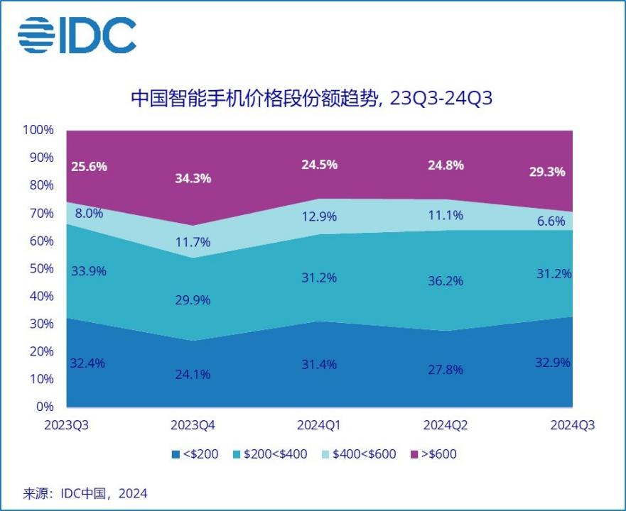 IDC数据显示,今年第三季度,超过600美元的高端手机市场份额达到29.3%,同比增长3.7%。%。这种增长不仅体现了华为手机的强劲回归,也体现了客户愿意为更好的使用体验花更多的钱。