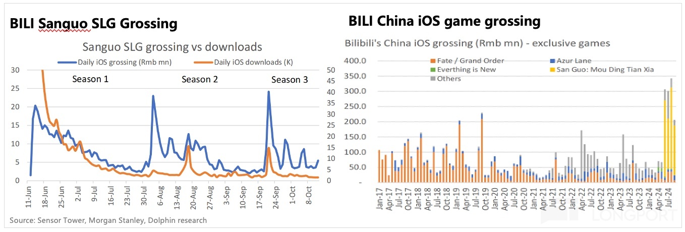 对于收入通常“高开低走”的SLG游戏来说,成为长青游戏是相当困难的。从哔哩哔哩Q3的递延收入来看,基本上不难保证Q4游戏的收入,但不确定明年能否继续领先。从目前哔哩哔哩的游戏渠道来看,似乎还没有出现下一次爆炸。