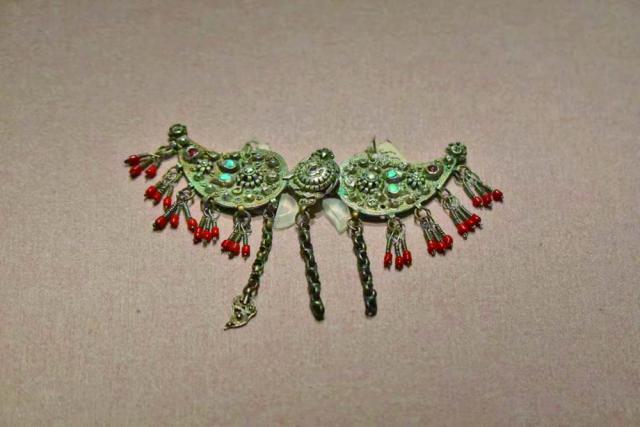 值得注意的是,在这套衣服中,碗状帽子是最亮最重要的头部装饰品之一。根据博物馆方面的说法,在西亚美尼亚,女性的头饰款式多样,色彩丰富。亚美尼亚的年轻女孩经常编辫子,用银饰和珠子装饰辫子,然后戴口罩、玫瑰等。发饰上经常挂着仿银币或金币的圆形装饰品。就像展览中套装的帽子,镶嵌着银币状的装饰品。据说到了 20 在世纪,人们甚至慢慢地开始使用真正的硬币作为装饰品。