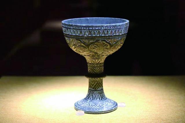 图片为亚美尼亚:18-20 世纪文化瑰宝展石高脚杯展品。 本报记者 梁信 摄