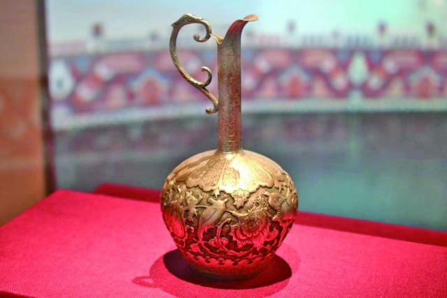 图片为亚美尼亚:18-20 银茶壶是世纪文化瑰宝展的展品。 本报记者 梁信 摄