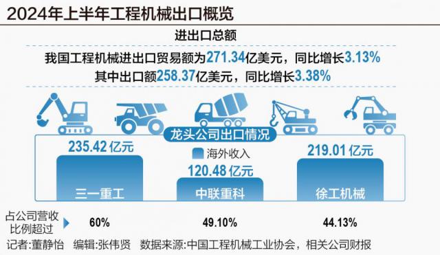 资料显示,上半年,我国工程机械进出口贸易额为 271.34 亿美元,同比增长 3.13%的出口值。 258.37 亿美元,同比增长 3.38%。