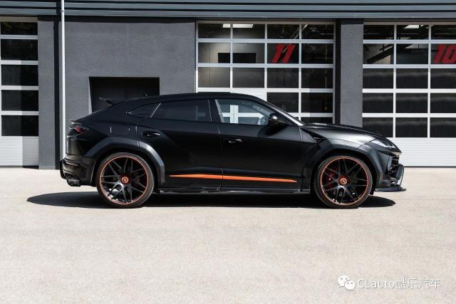 最为明显的变化是整车安装 24 英尺超大轮毂配有哑光黑色辐条和橙色外轮廓,整车配有缎面黑色涂层。前后分离器和侧裙也配有橙色装饰,车顶还配有新尾翼和大型碳纤维扩散器。