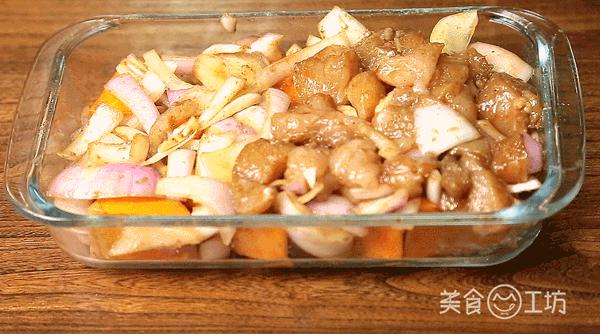 2. 加入所有调味品,与食材混合均匀,腌制 30 分钟。
