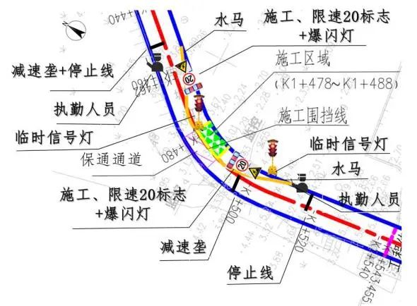 为确保市民出行安全,施工期间,公安交警部门将与施工方在相关交通节点设置必要的交通安全设施和施工提醒标志,并配置指挥和疏导施工段的交通执勤人员。请根据临时交通指示灯的指示,注意过往车辆和行人的观察和交替通行。请理解施工带来的不便!