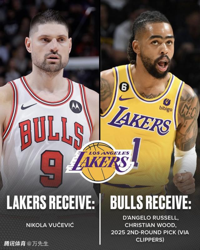 美国媒体为湖人队提供了一套交易计划,即湖人队将拉塞尔、伍德、快船送出。 2025 每年的轮签,获得公牛队的武切维奇。这一方案能很好地解决湖人队的内线问题,但公牛队会同意吗?