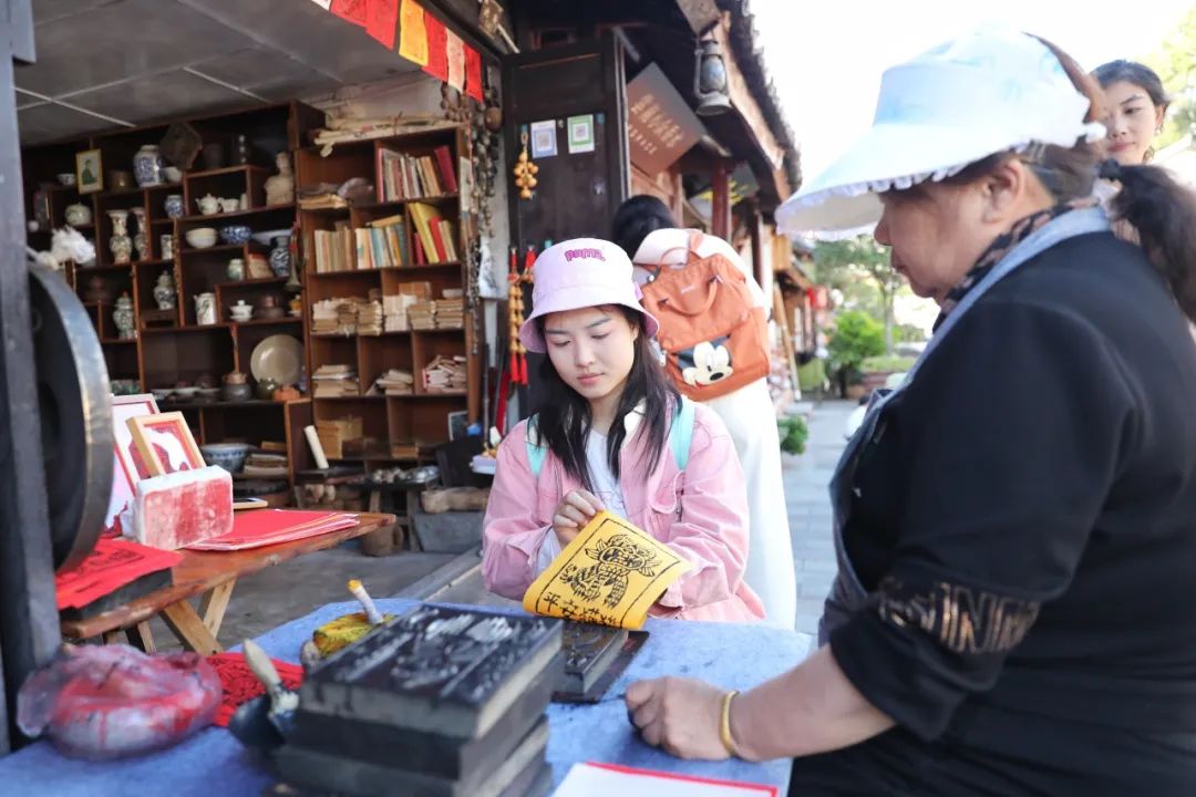 在古城里,还可以体验扎染、甲马、瓦猫等民间非物质文化。甲马,又称“纸马”和“神纸”,是一种民间木刻绘画艺术。瓦猫通常放在屋顶、角落等显眼的位置,这意味着祈祷和幸运。
