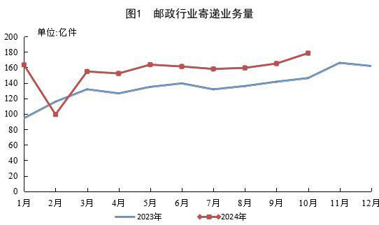 IT 世家 11 月 16 国家邮政局昨天(11日) 月 15 日本)发布博文,发布 2024 年 1-10 每月邮政行业的运行状况。邮政业收发业务量 10 月完成 178.4 亿件,同比增长 22.0%;1~10 月完成 1555.0 亿件,同比增长 19.9%。