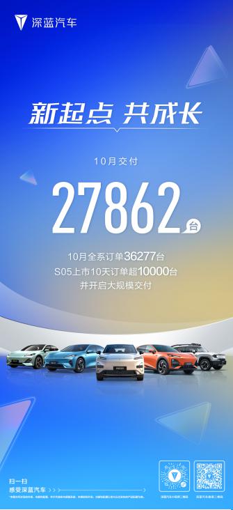 深蓝品牌在 27 在一个月内,销售突破已经完成 30 没有深蓝品牌对技术创新和服务水平的不断提高,取得了巨大的成就。未来,深蓝品牌将继续努力提升交付能力,优化服务流程,加强品牌建设,不断提升综合竞争力和市场影响力,不辜负消费者的期望,为新能源汽车产业的发展注入活力和动力。